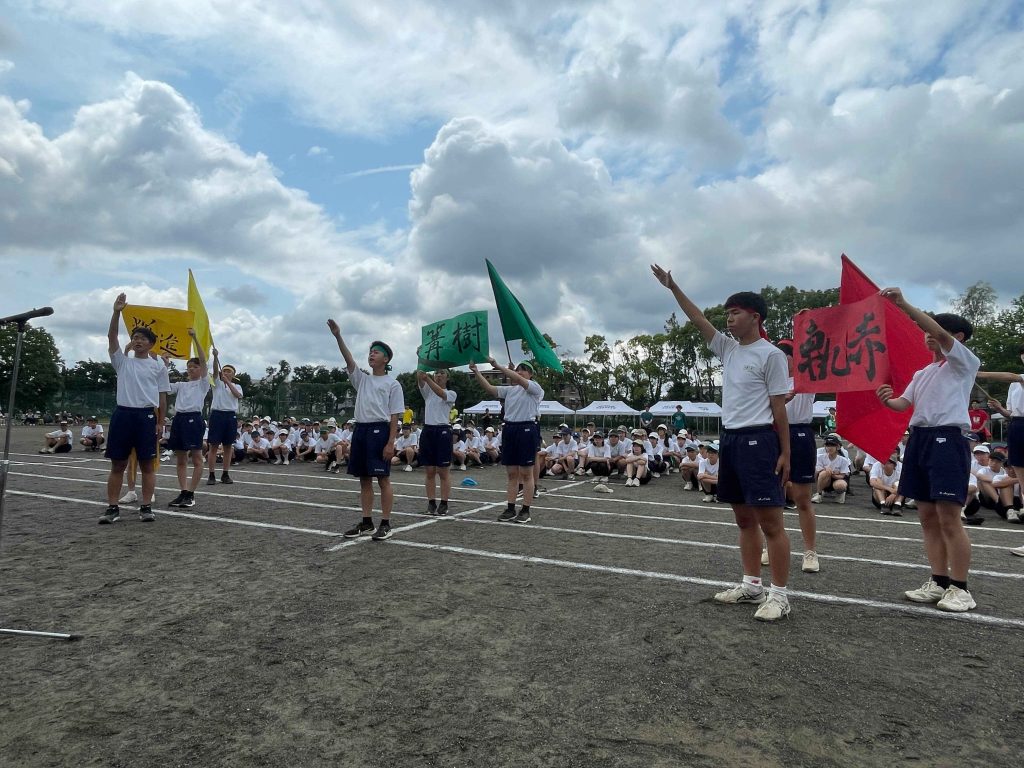 開会式では、体育委員長の藁科さん、生徒会長の石塚さん、各色のチームリーダーである金谷さん、福嶋さん、内藤さんが今年度のゆう陸にかける想いを語り、前日までの雨の影響を吹き飛ばすように、学校全体の士気を高めてくれました。