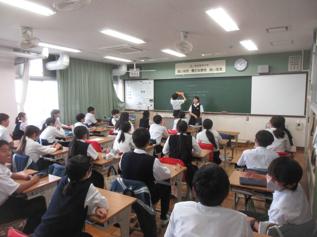 ゆう文の「合唱の部」に向けて、各学級で「合唱曲決め」の時間がありました。自分たちが歌いたいという気持ちだけでなく、聞いている人にどんなものを届けたいか、学年としてどういう構成が良いのかといったことまで考え、合唱委員を中心に曲を決定します。