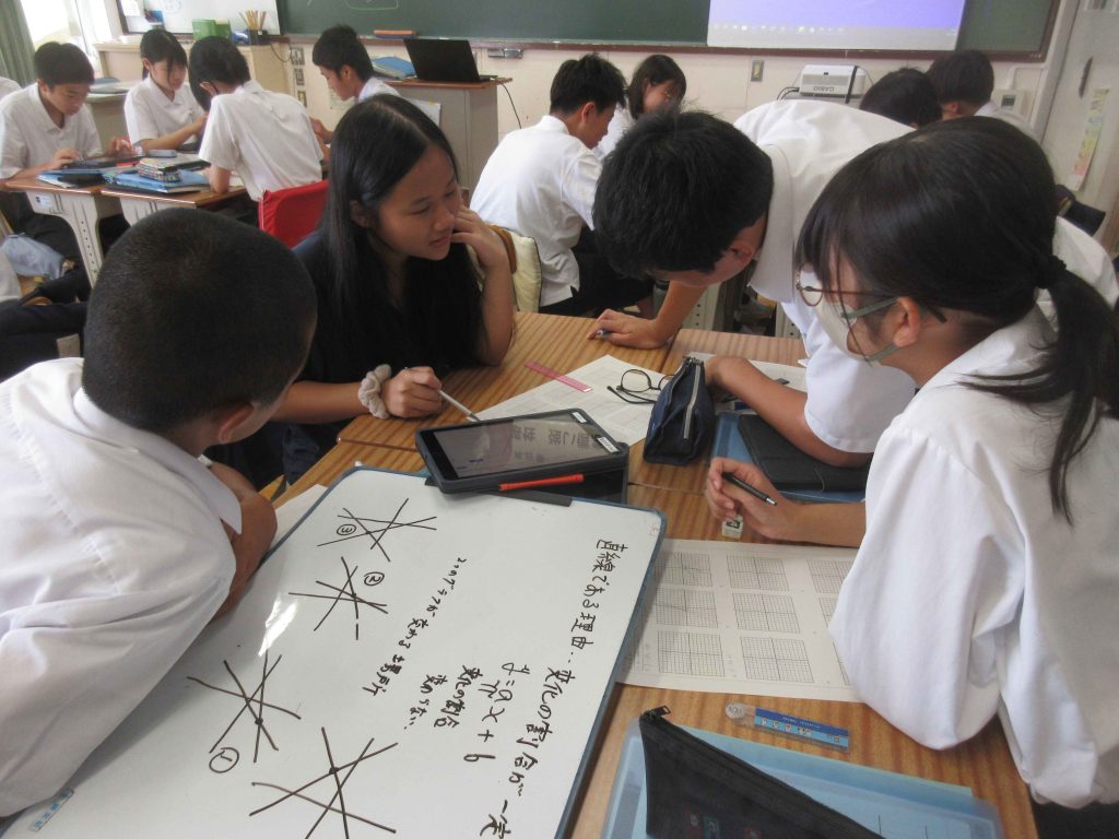 留学生との授業も2日目となり、初日よりも交流がスムーズになっている様子でした。附属島田中の特色ある授業が各教科で実施され、留学生も一緒に考える時間が増えました。