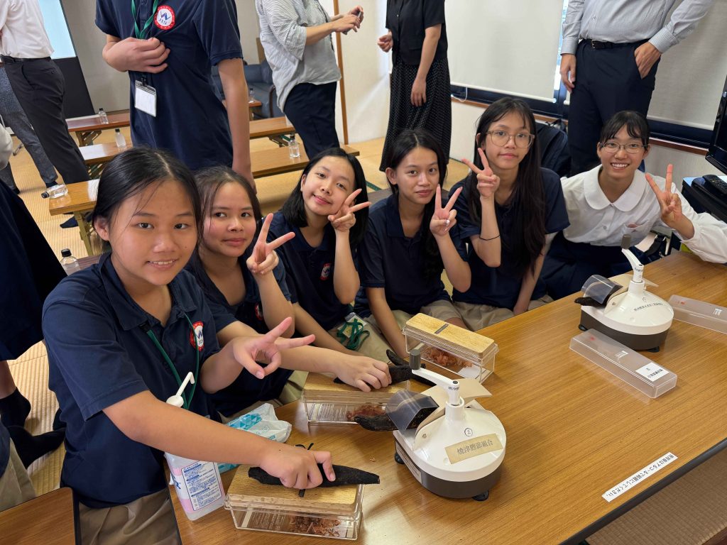 工場の中では、鰹節ができるまでの行程を見ることができ、ベトナムの留学生はもちろん、附属島田中生も興味深く担当の方の話を聞いていました。