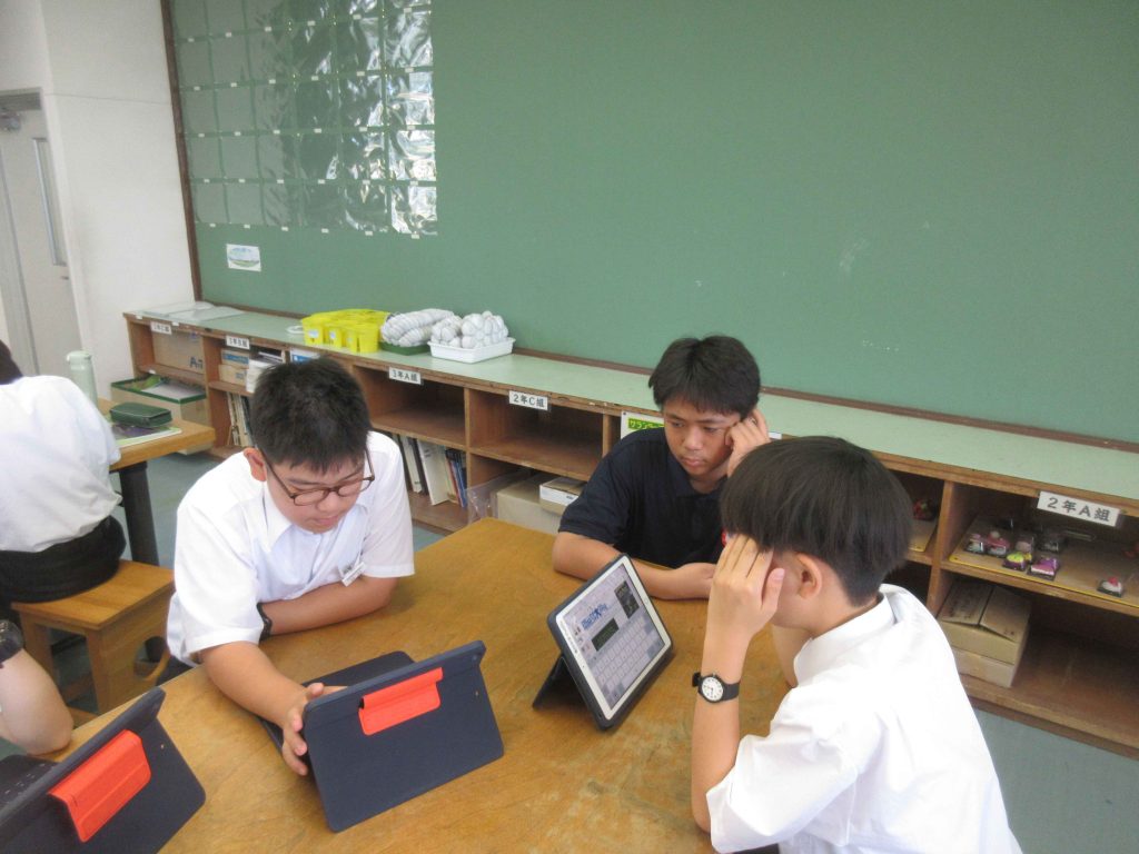 ベトナムの留学生との授業も最後を迎えました。どのクラスを覗いても、附属島田中生と同じように、課題に向かう留学生の姿がありました。今回の留学生との授業は「普段通りの附属島田中学校の授業」でした。今回の3日間の授業の中で「島附の授業」に慣れ、より良い追究ができたと思います。また、附属島田中生にとっても、留学生との授業を通して、自分たちの授業を振り返り機会にもなったと思います。