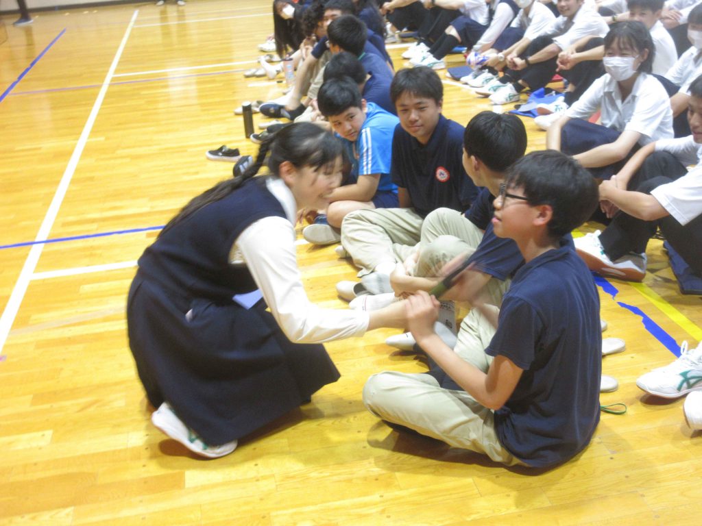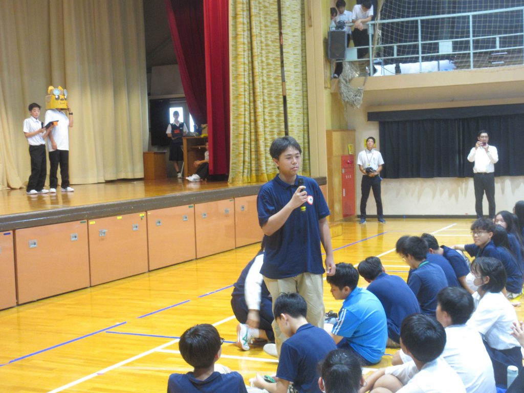 この3日間の留学生との生活を振り返る動画が流れ、本当にあっという間に時間が過ぎていったと感じました。「シマフストリート」も「かわいいだけじゃだめですか」をベトナムVerにして、ダンスで会を盛り上げてくれました。トークタイムでは、3日間で何が一番印象に残っているかをインタビュー形式で留学生も島附生にも聞きました。留学生も島附生も「配属学級で一緒に勉強したり、話したりすること」や「ホストファミリーに連れて行ってもらった場所について」の話題が出ました。代表生徒のミンさんは、「素晴らしい3日間をありがとうございました」としっかりと日本語で伝えてくれたため、多くの人にその気持ちが伝わったと思います。