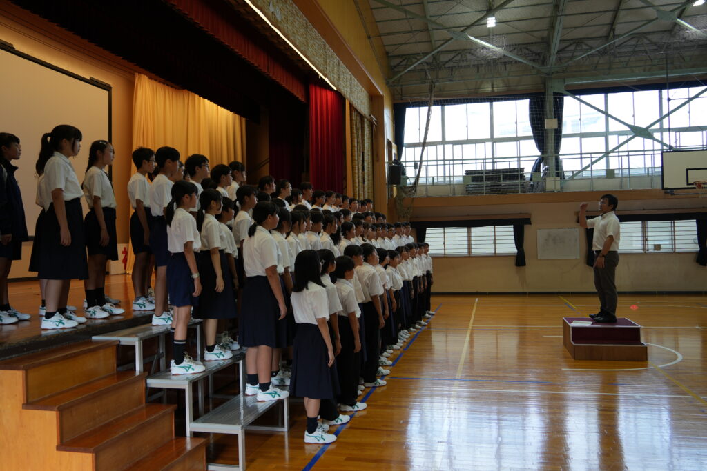中間発表会が行われました。今年度のゆうかり祭文化部門は、10月3日(金)に行われます。2学期に入り、本格的に合唱練習がスタートし、練習を積み重ねています。合唱を通して、様々な挑戦や積み重ねを行い、生徒会の基本方針である「蝶越」を達成することを目指しています。