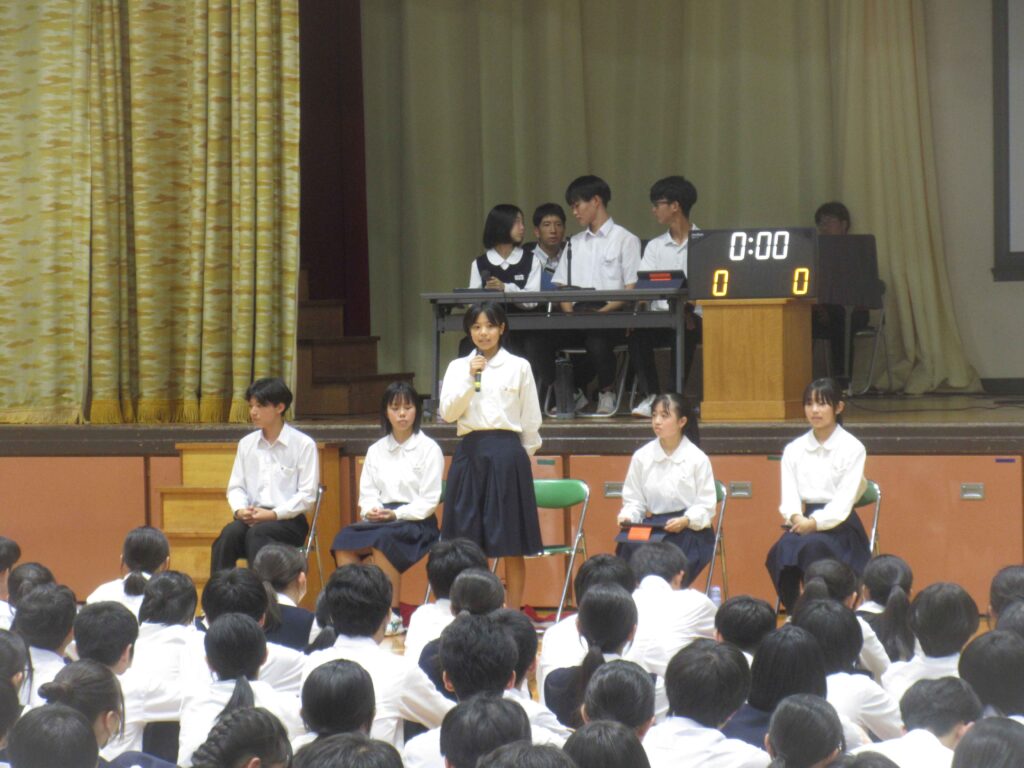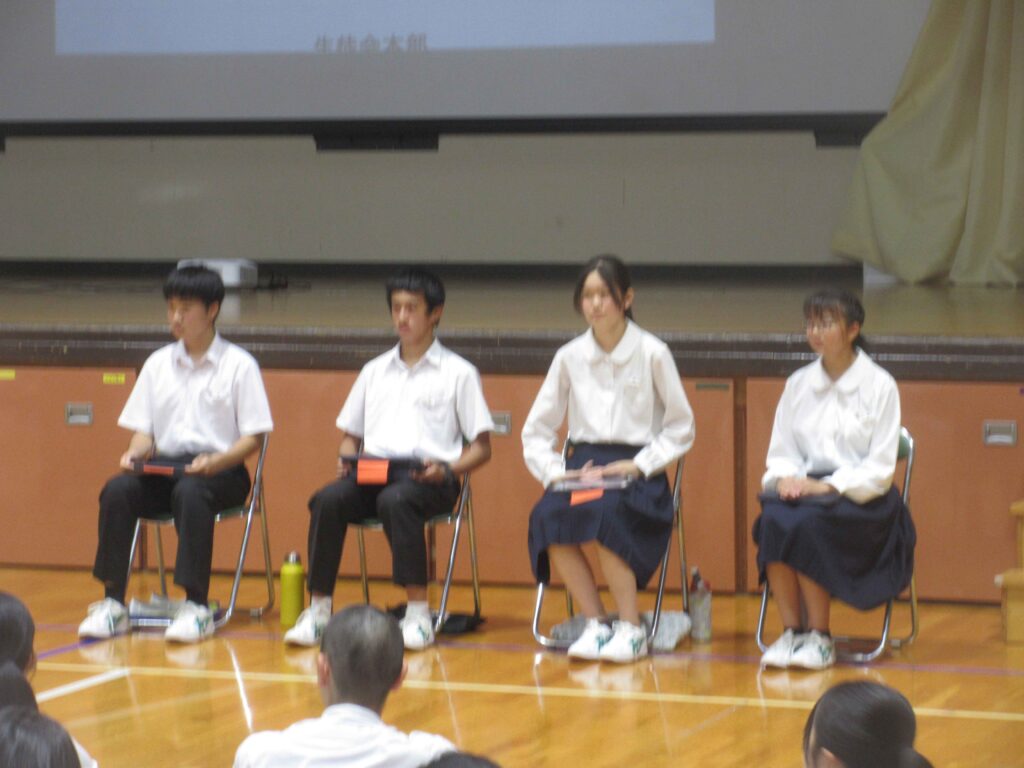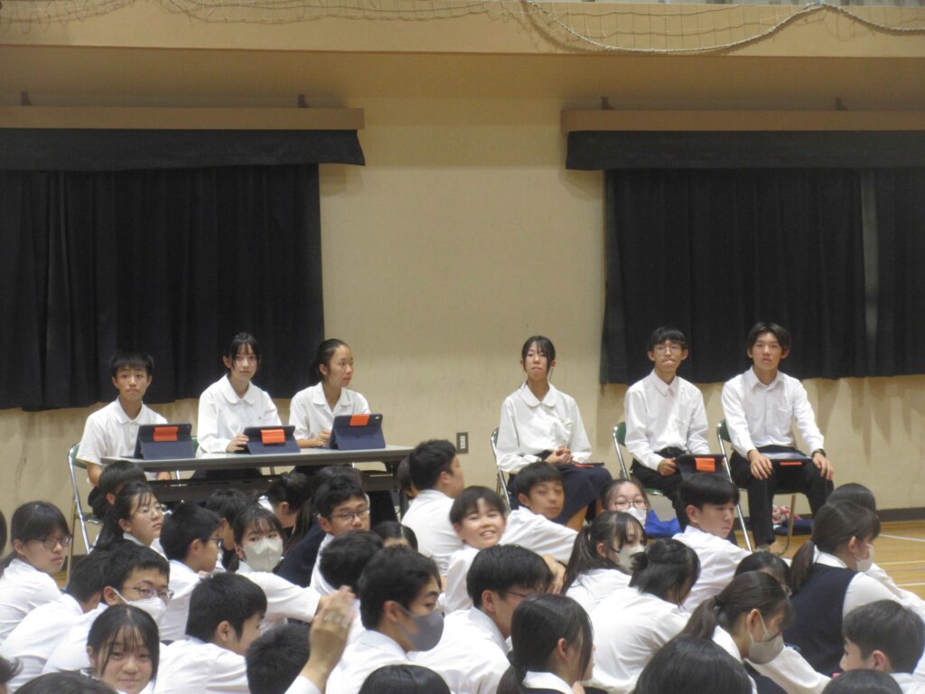 その後、各委員会への要望や意見を伝える時間となりました。3年生が積極的な意見を出して雰囲気を作ってくれたおかげで、2年生や1年生も自分の伝えたいことをしっかりと全体で共有することができました。