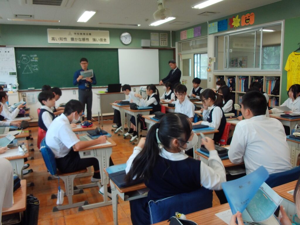 島田樟誠高校の先生方が来校し、附属島田中学校の授業を参観されました。2学期になり、何度も授業公開が行われています。今回の授業公開でも、いつも通りの附属島田中生が主体的に取り組む授業がどのクラスでも実践されていました。ゆうかり祭文化部門が終わった後でも、しっかりと「ゆうかり祭日常部門」に取り組んでいる様子が見られ、さすが附属島田中生だと感じました。