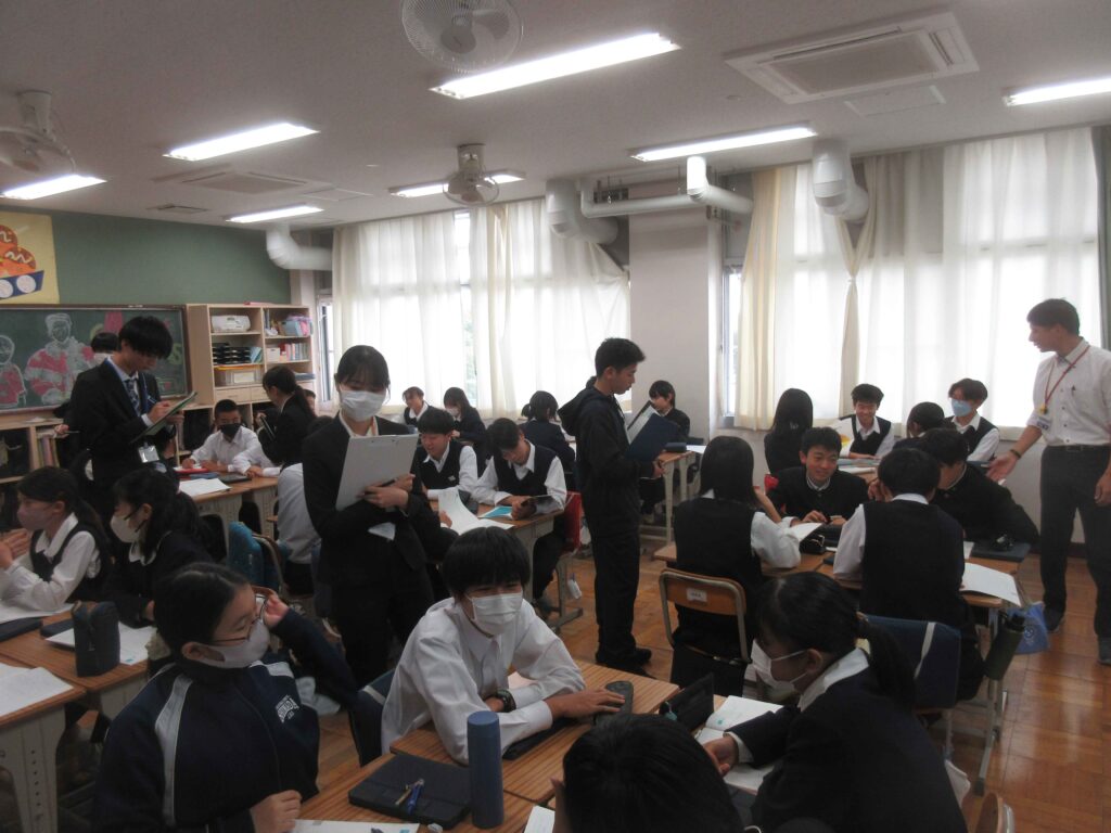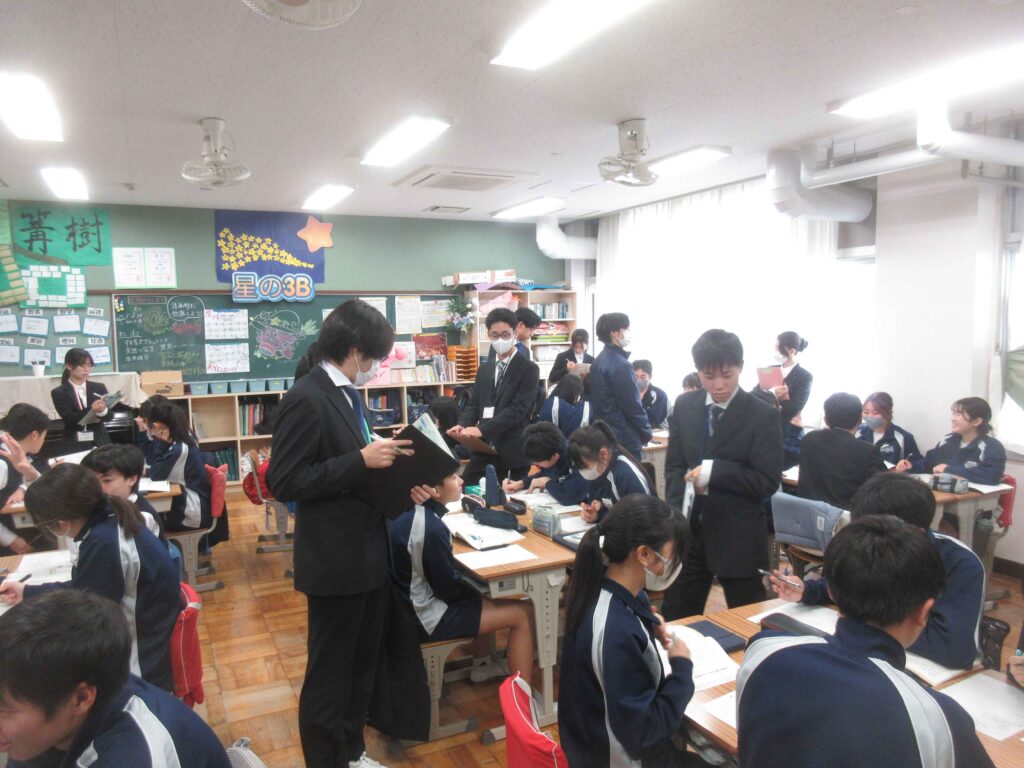 附属島田中生が取り組む道徳の授業を見て、「しっかり自分の考えを持てていること」や「他者の考えを受け止めながら意見交換している」と驚いた実習生もたくさんいるようです。