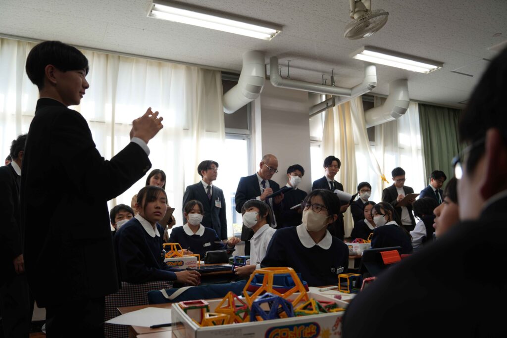 教科研究会2日目が実施されました。2日目は、数学、美術、家庭、技術の授業公開があり、その後の事後研修で意見交換等を行いました。
