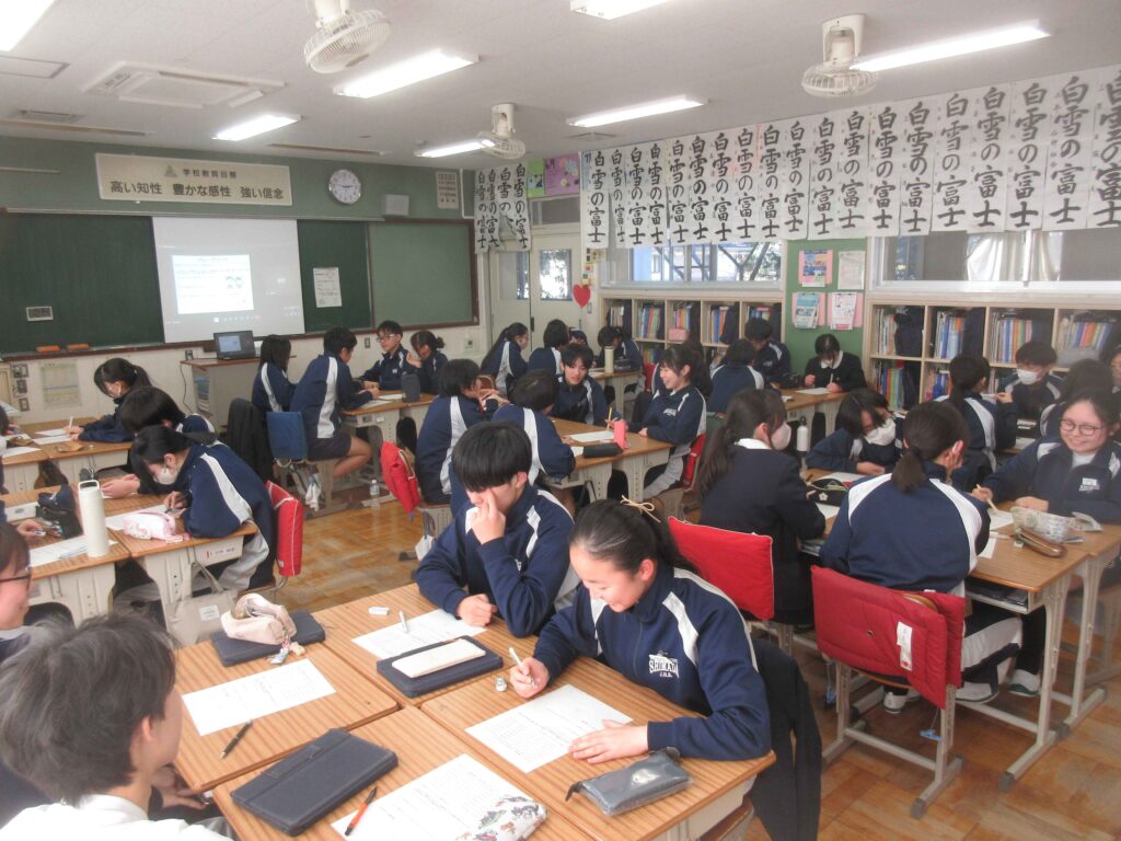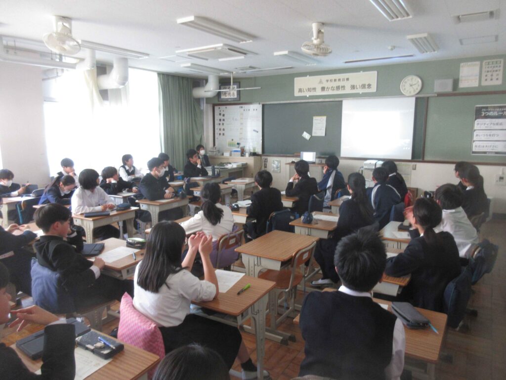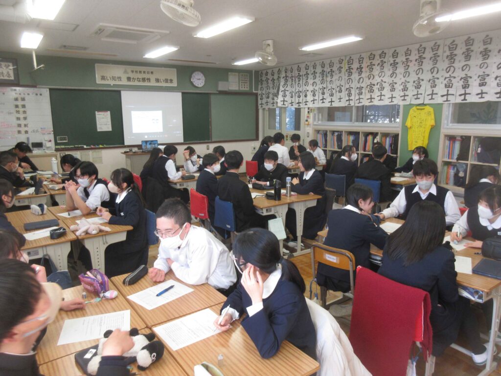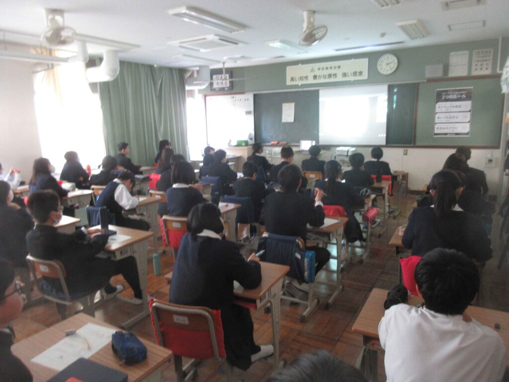 学校保健委員会が実施されました。今年度の学校保健委員会は、スクールカウンセラーの山崎先生を講師お招きし、「人とつながる、ちょうどいい距離-バウンダリー(心の境界線)を知ろう-」というテーマで、講演をしていただきました。具体例を交えて、心の内側のことを説明してくれたり、具体的な場面についてグループで考えたり、今後の自分と相手の距離や境界線について学ぶことができました。またバウンダリーは、相手、場面、年齢、体調や心の状態によって変わることがあるということも印象的でした。