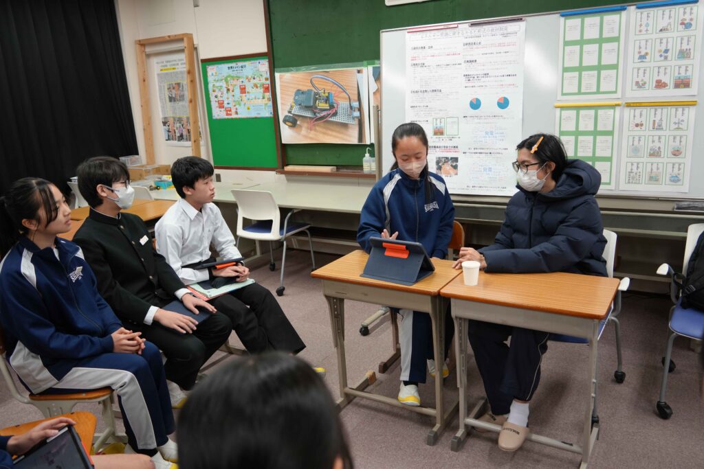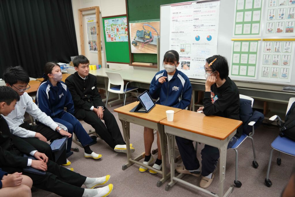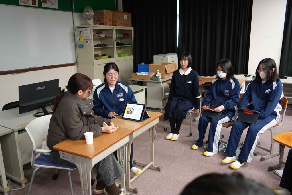 昨年の11月にも実施されましが、先日も静岡大学の留学生と2年生が英語の授業で交流を行いました。今回の留学生たちも、タイやマレーシアから来た学生達です。今回は、生徒が英語の授業でスライドにまとめたものを見せながら留学生に一生懸命にプレゼンを行う授業でした。習ったことをしっかりと意識して、相手を意識した説明ができていたと思います。 また来年度もこうした交流がたくさんできると良いですね。