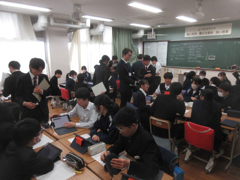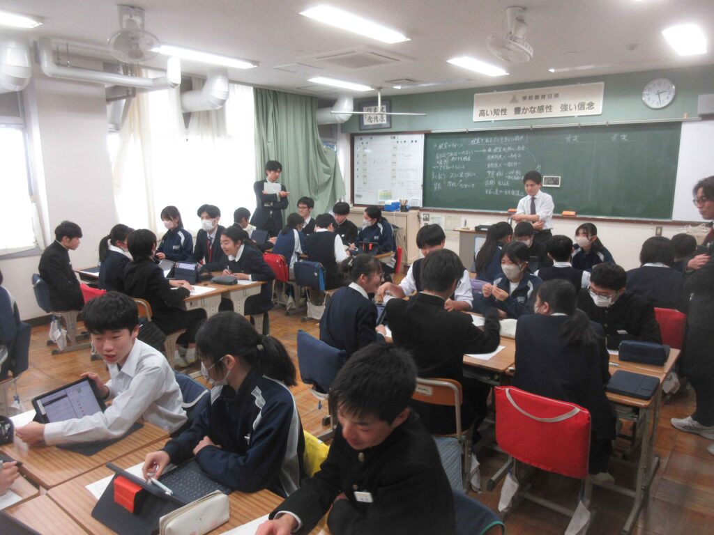 社会科の授業の一環で、静岡大学の大学生と税理士の方をお招きして、2年生で租税教室が行われました。身近である「税」について、かるたやディベートを通して楽しく学ぶことができました。実際に税金のことやその仕組みについて考えていくことは、今後の自分たちにとって重要なことだと思います。学んだことを普段の生活に繋げていける良いですね。