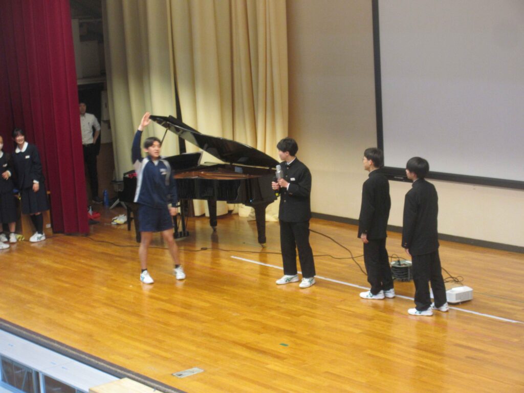 3年生を送る会が実施されました。3年生が公立入試に行っていた時間を利用して、1、2年生で色々な準備を行っていました。「3年生に楽しんでもらう会にしたい」と生徒会が中心となり、計画&運営をしました。