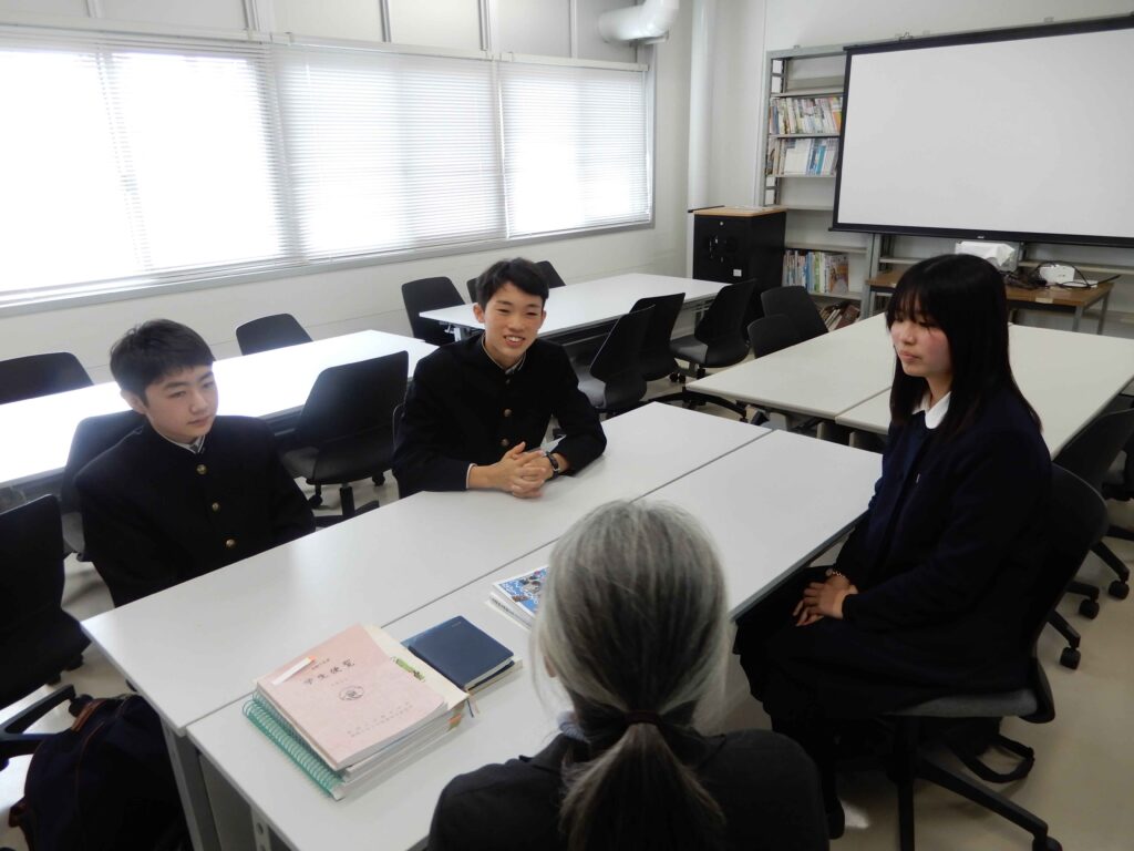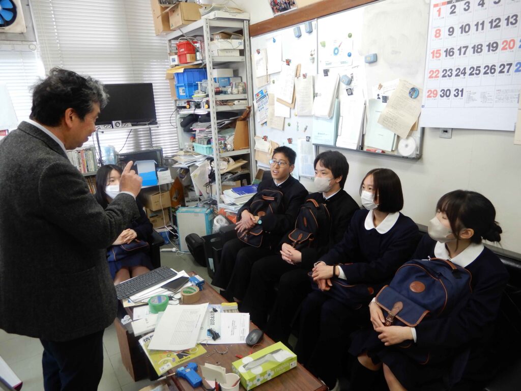 3年生は恒例の「研究室訪問」に行きました。研究室訪問は、静岡大学に行って大学の先生から専門的なお話を聞く機会となります。自分の興味や関心があることなどを、中学校では習わないような専門的な知識や教養を大学の先生から教わることはすごく刺激だったようです。帰りのバスから降りてきて、すぐにその話をしてくれた3年生もいました。