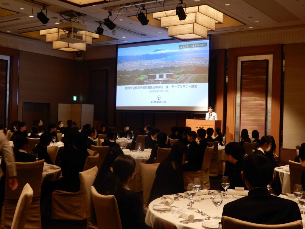 また研究室訪問後は、日本平ホテルでテーブルマナー講座、そして夢テラスで楽しい時間を過ごしました。