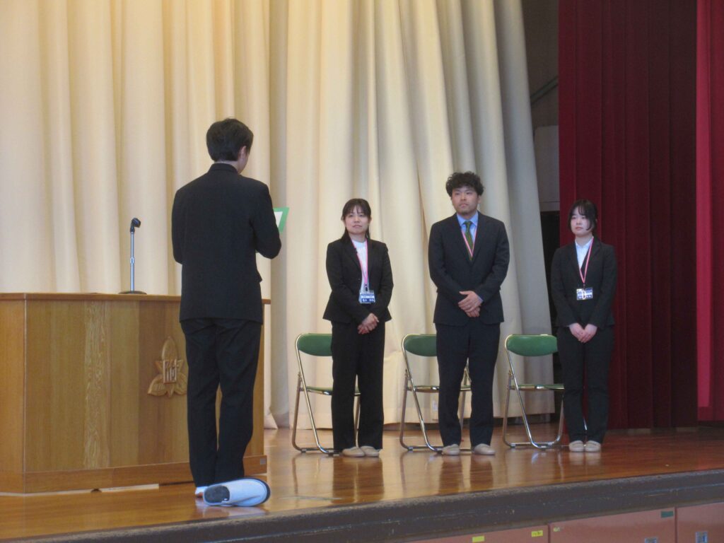 新任式では、新たに4名の先生方との出会いがありました。どの先生も個性豊かな挨拶をしてくださり、これからの授業や学校生活が楽しみになりましたね。