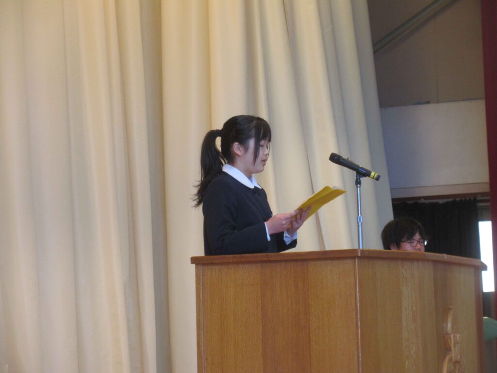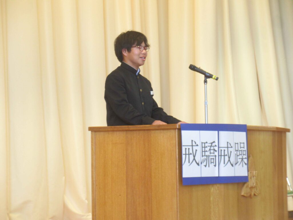 その後に行われた始業式では、新2年生、新3年生の代表の生徒から「新しい学年になって」の決意が発表されました。