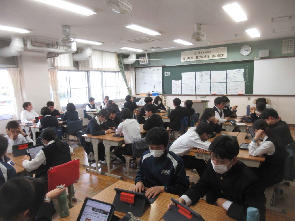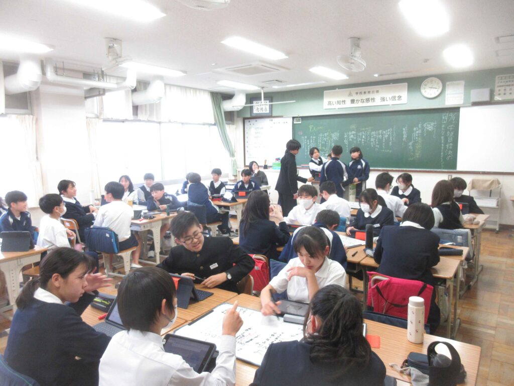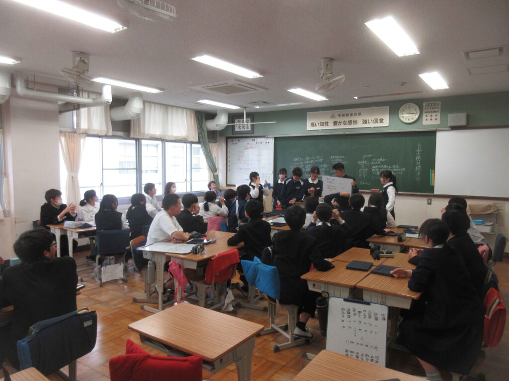 附属島田中学校では、毎年それぞれの学級で個性あふれる目標が作られます。学級目標決定までの話し合いのも熱い思いがぶつかり合う時間となります。