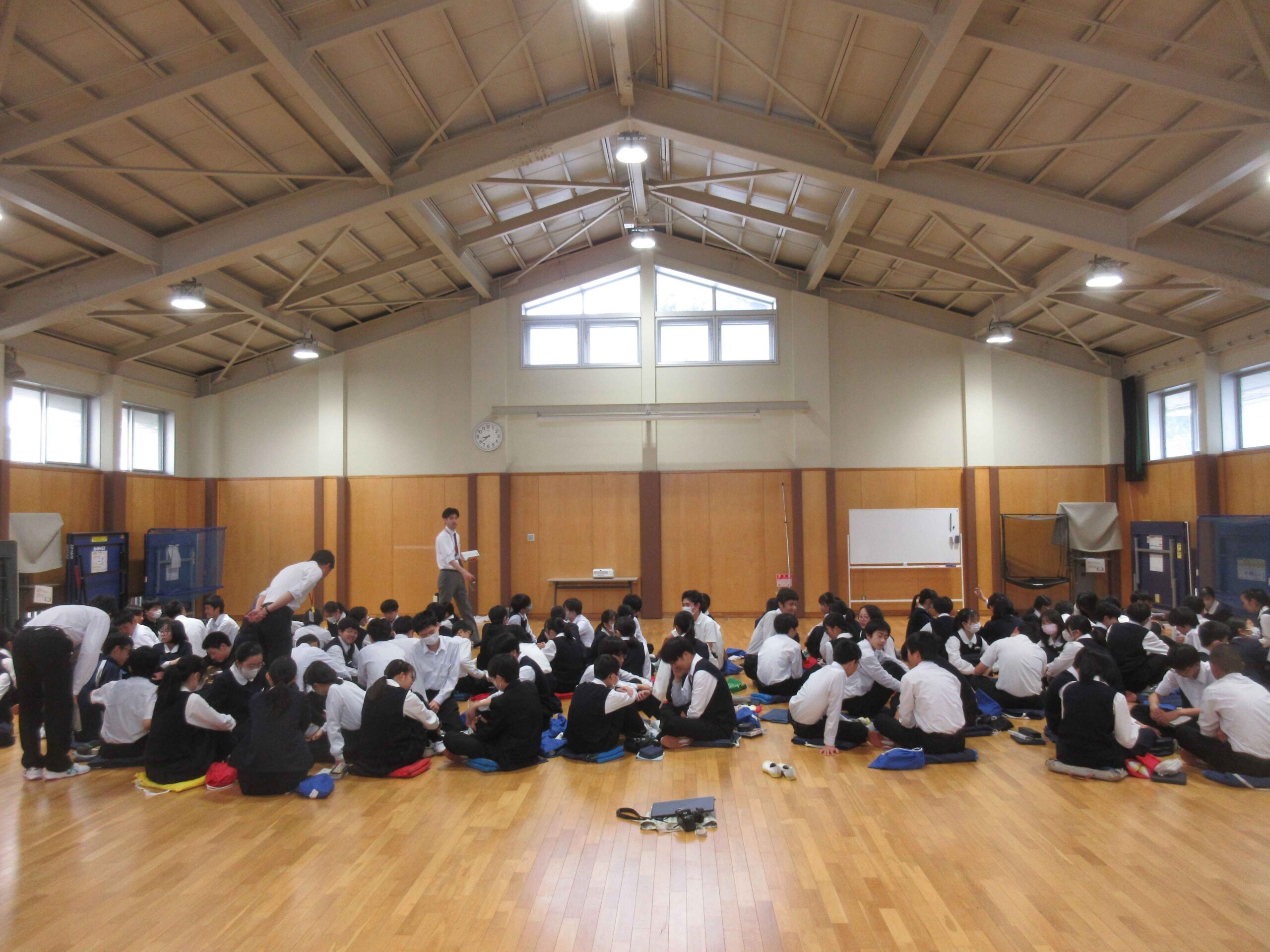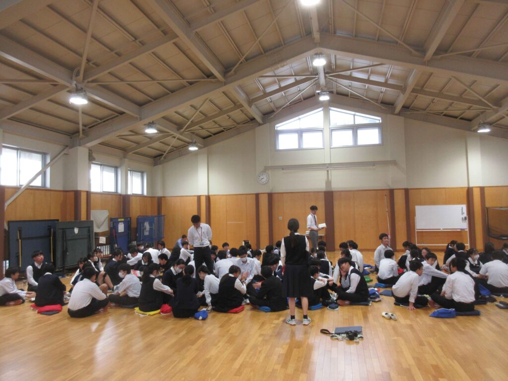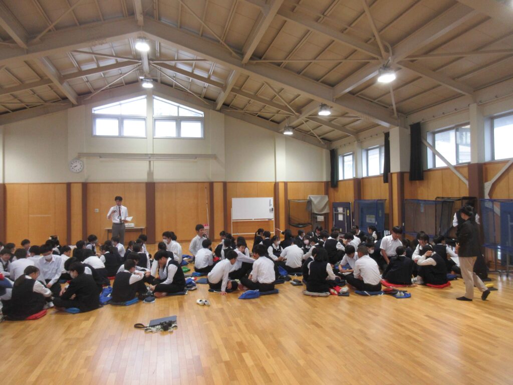 3年生が修学旅行の帰着式を行いました。フリートーク形式で、沖縄での体験を振り返っていました。