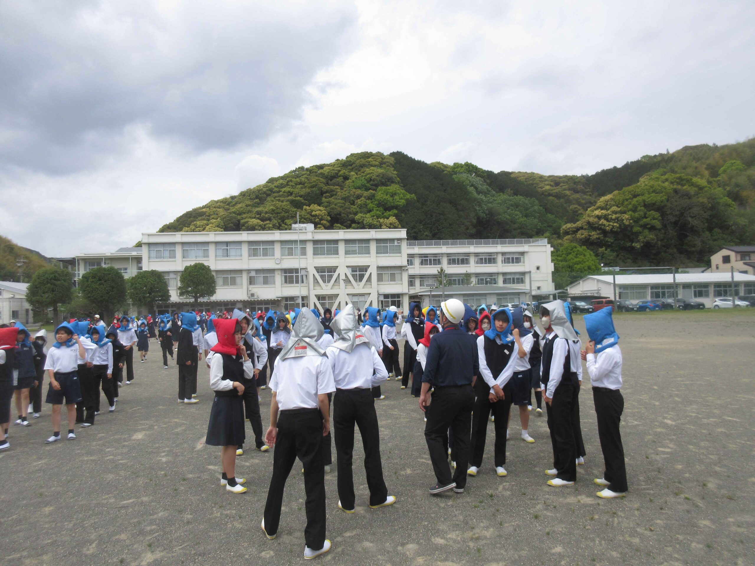 今年度最初の防災訓練がありました。今回の防災訓練は、地震を想定しての訓練でした。実際にグラウンドまで避難し、人数把握の点呼や報告などを行いました。全体的にスムーズな訓練を行うことができていました。
