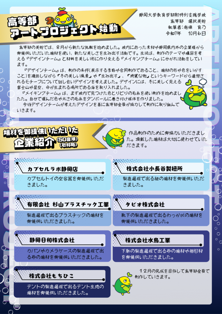 高等部アートプロジェクト始動しました!